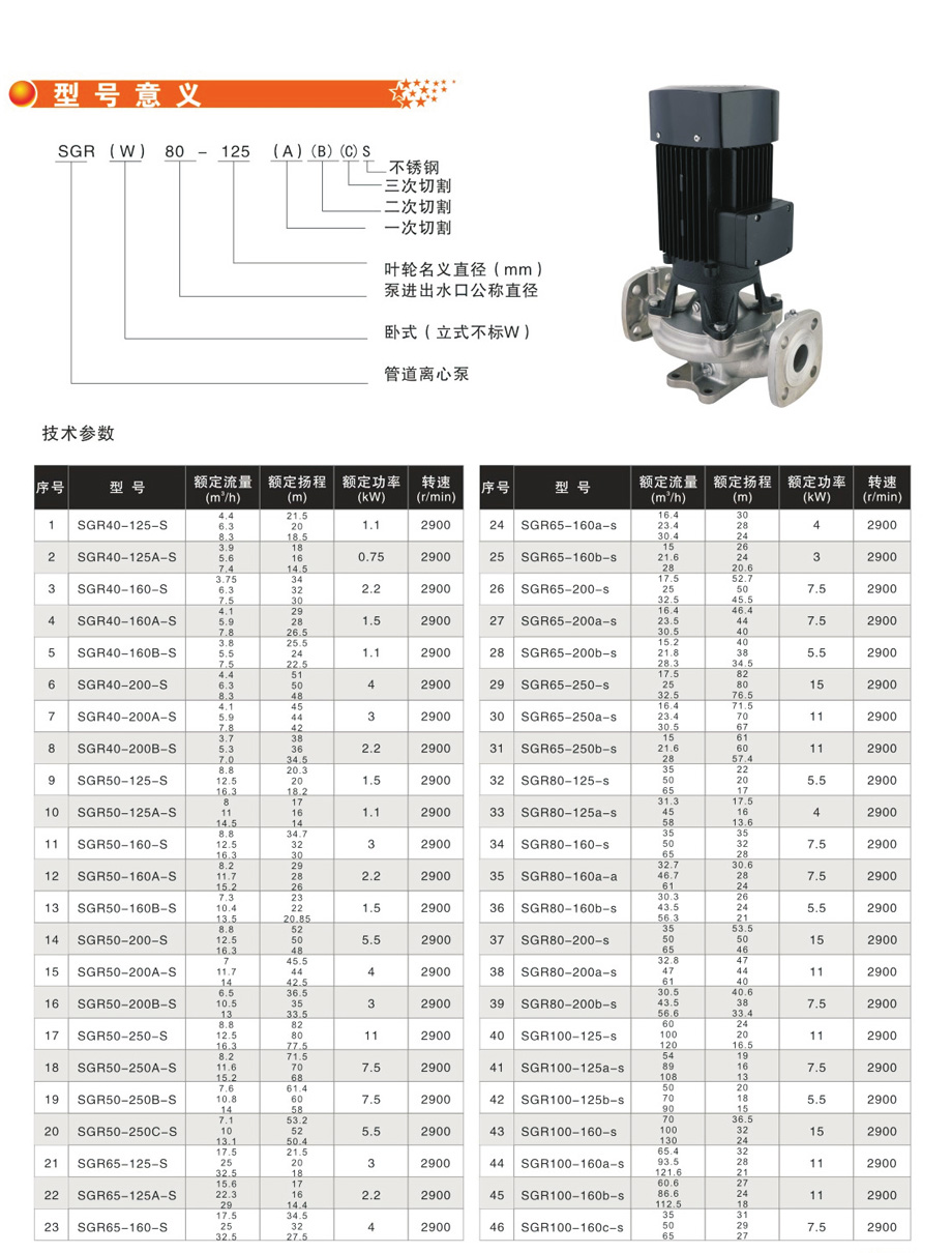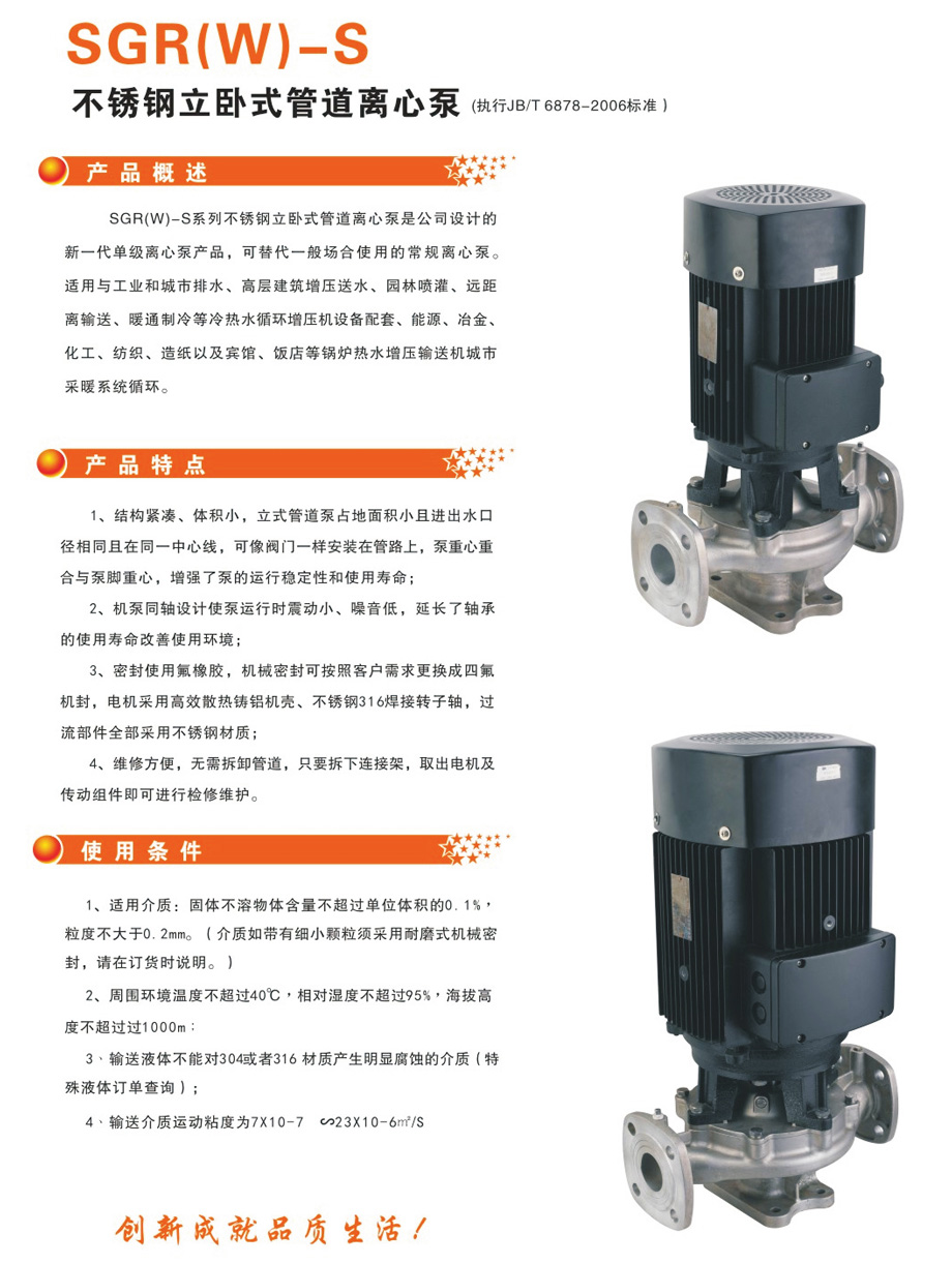 SGR(W)-S 不锈钢立卧式管道离心泵